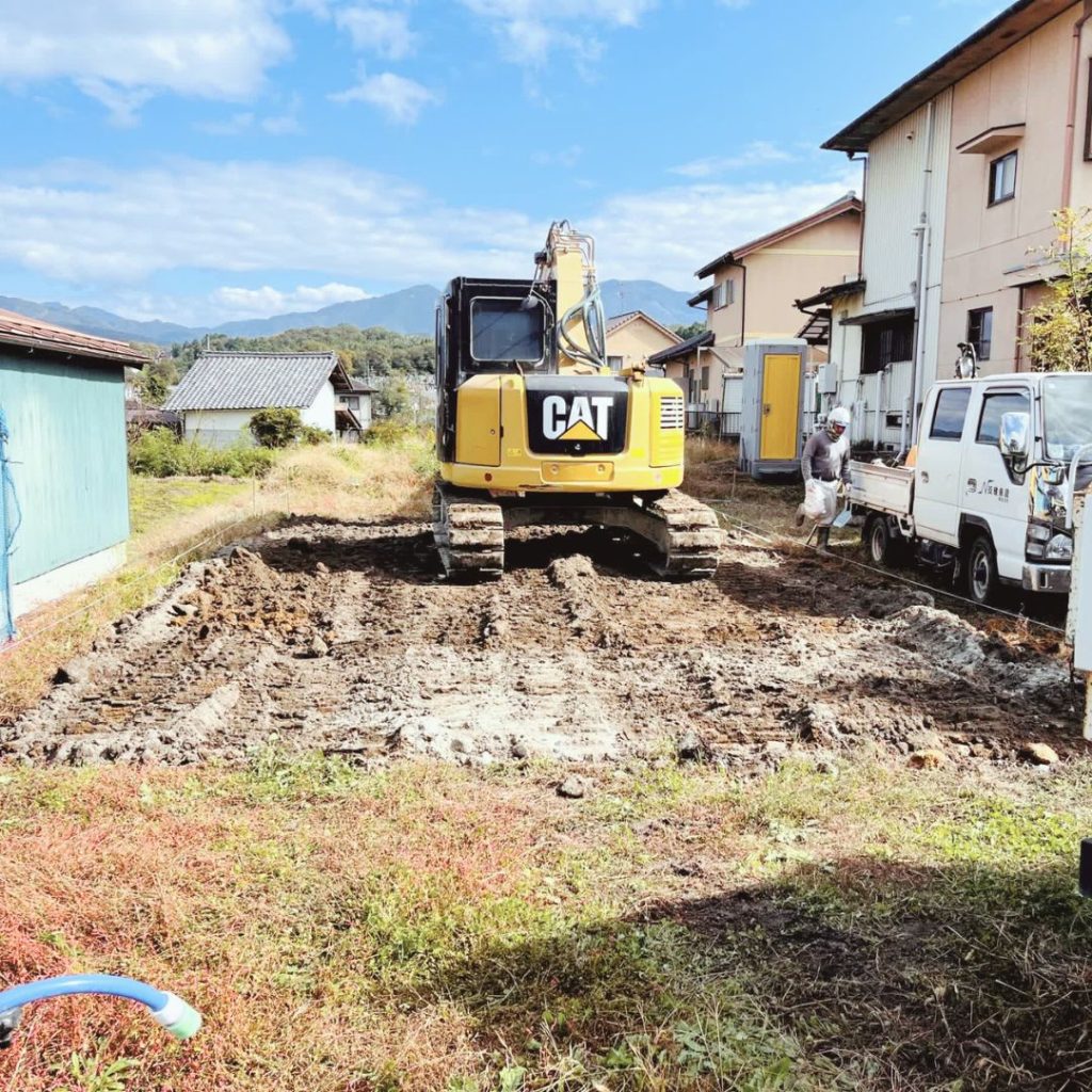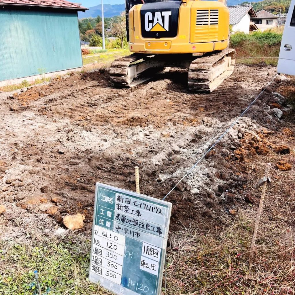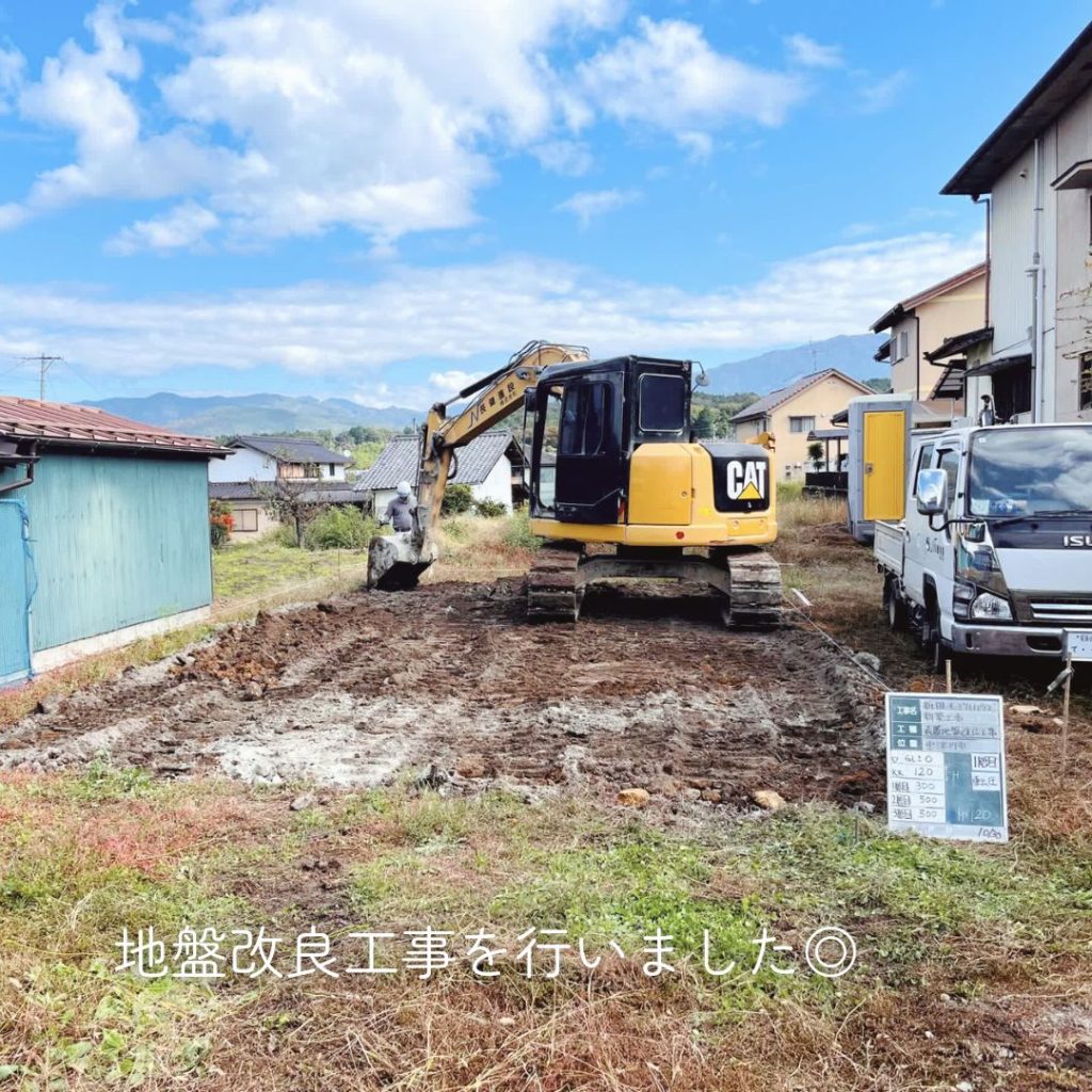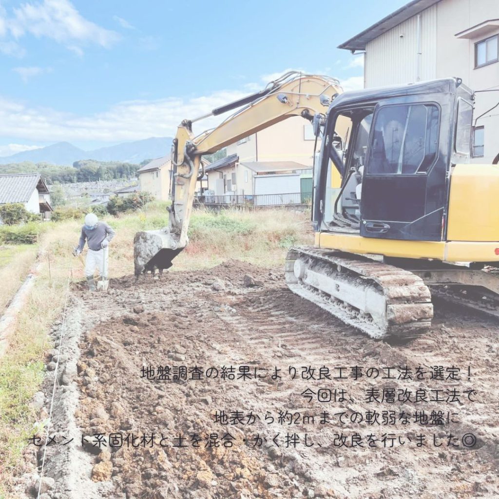 セメント系固化材と土を かく拌し、改良工事を行いました♫