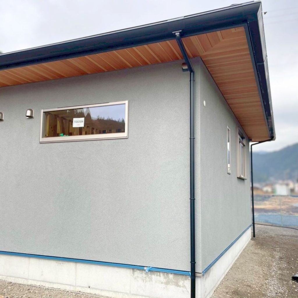 お家の正面の半分は、ジョリパットのミーティア仕上げです。