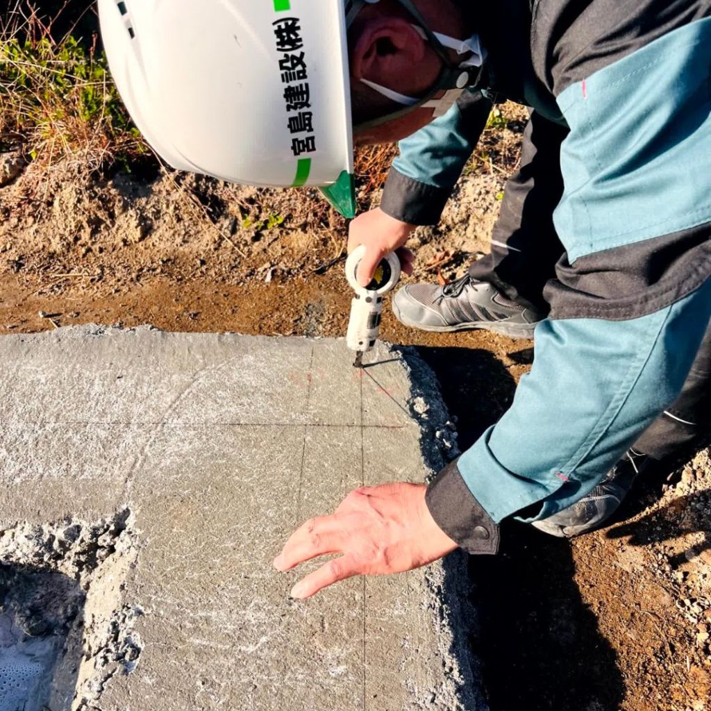 適切な「かぶり厚さ(鉄筋からコンクリート表面までの距離)」が確保されているかを確認します。