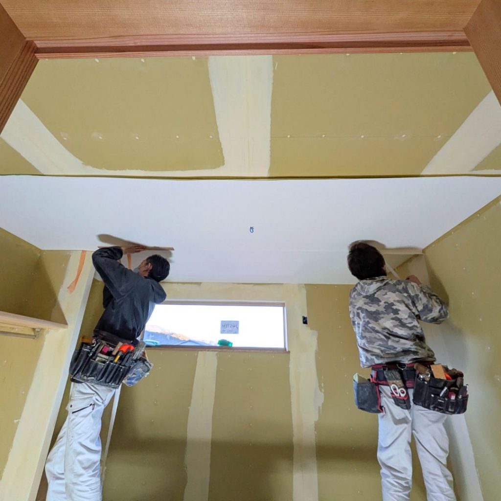 糊がついたクロスが出来上がると、いよいよ貼る作業ですが・・・