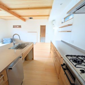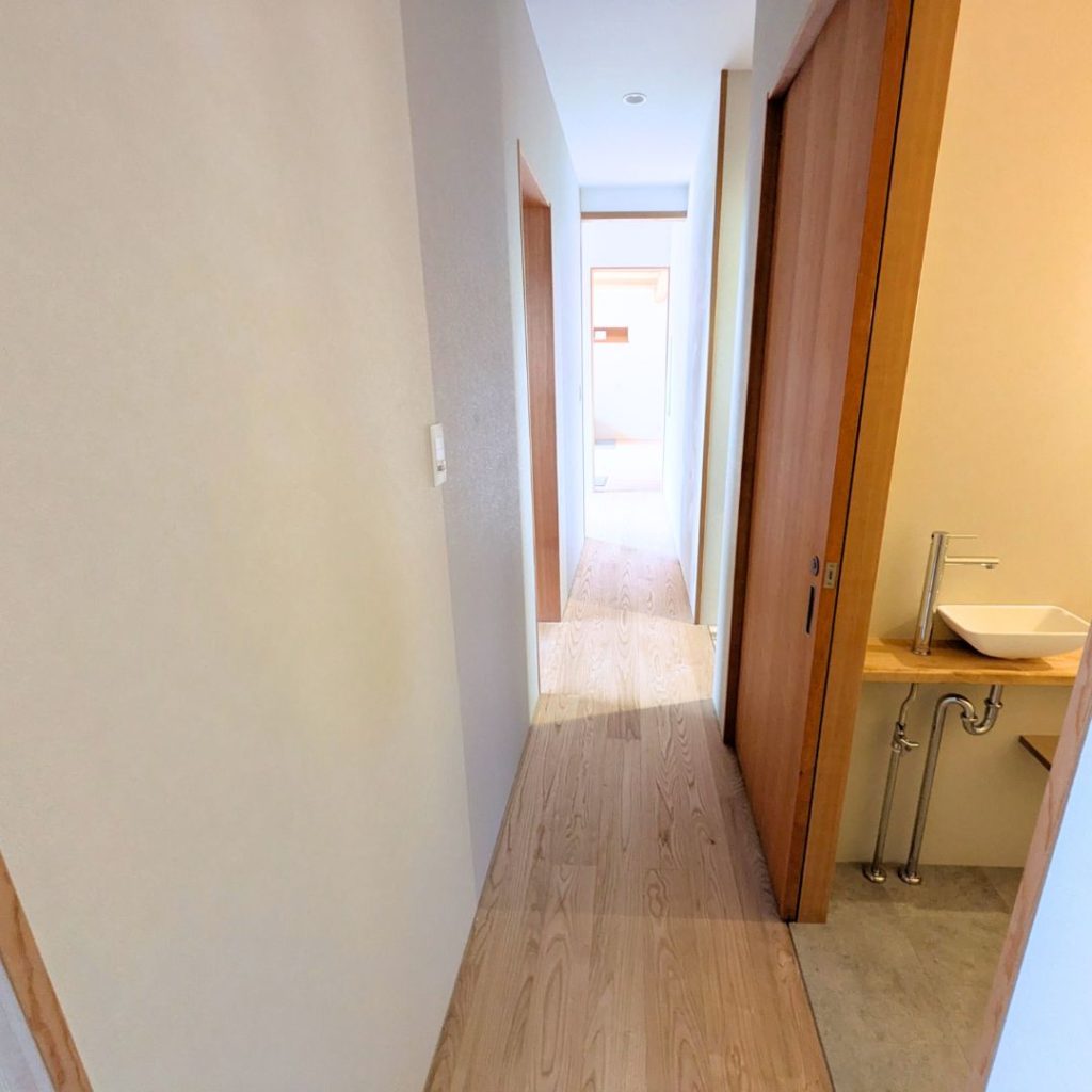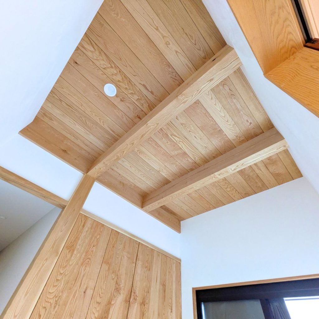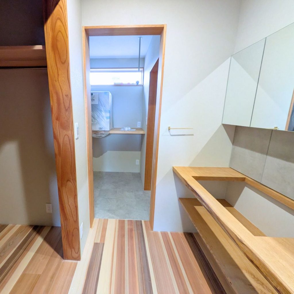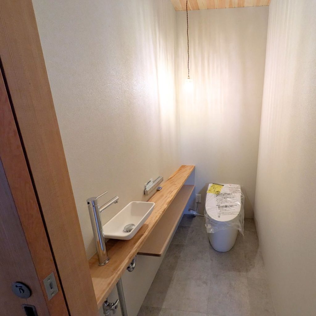 トイレの手洗いの天板や玄関の天井、玄関のウォールニッチ部分は栗の木を使用しています。