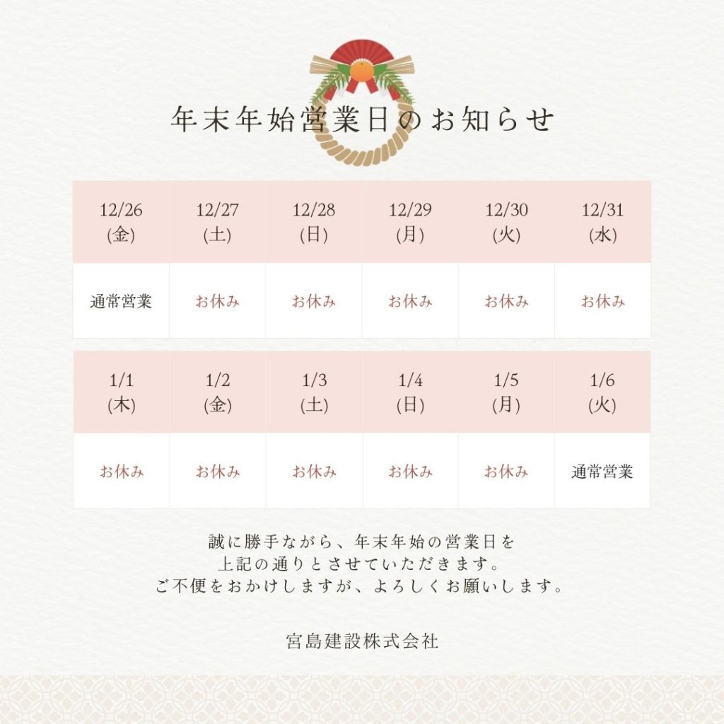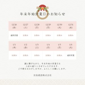 年末年始の休業日とさせていただきます。